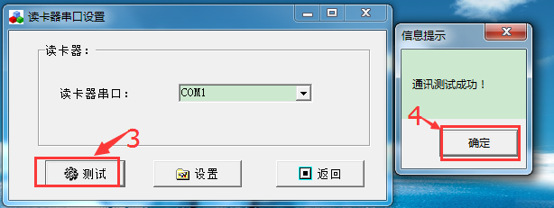 如果測(cè)試提示“通訊測(cè)試成功”就代表讀卡器連接正常。